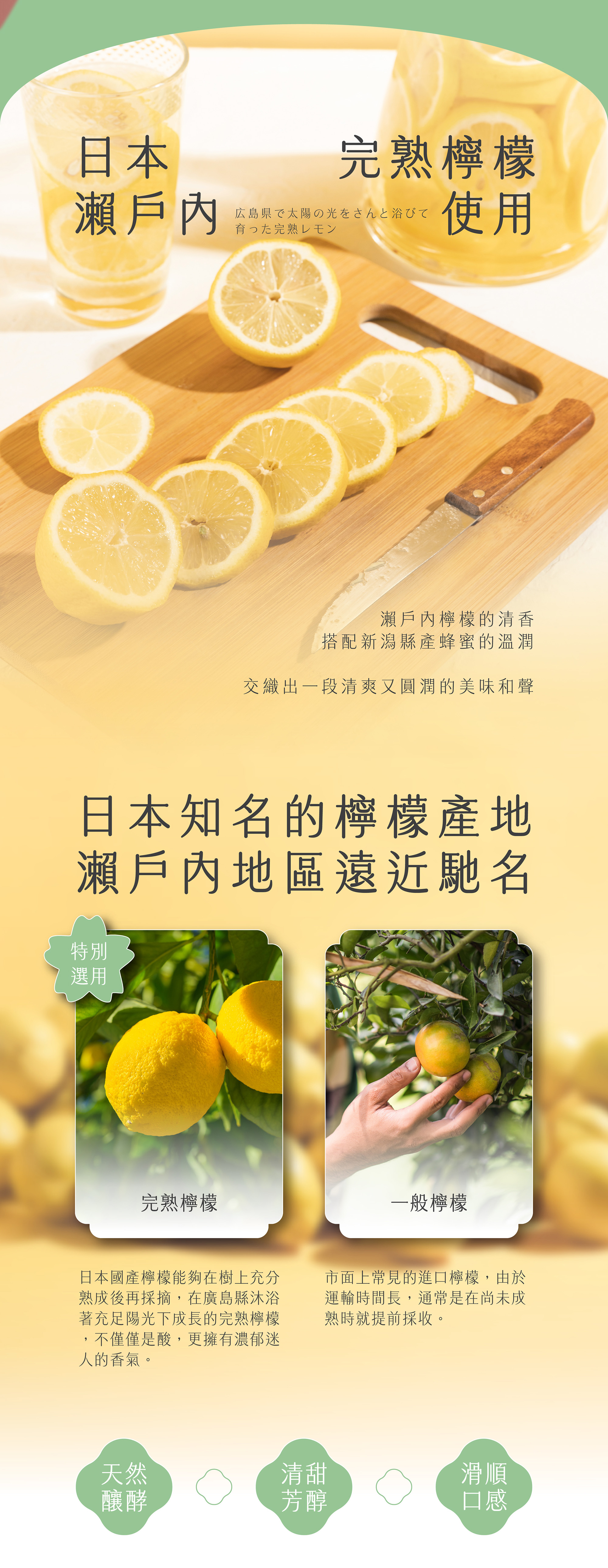 瀨戶內檸檬的清香,搭配只在特定季節、特定地區才能採得的新潟蜂蜜。